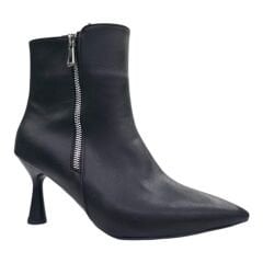 Siyah İnce Topuklu Fermuarlı Kadın Bot