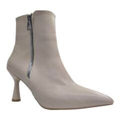 Bej İnce Topuklu Fermuarlı Kadın Bot