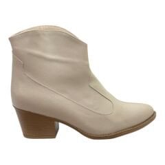 Bej Asimetrik Kısa Topuklu Kadın Bot