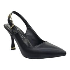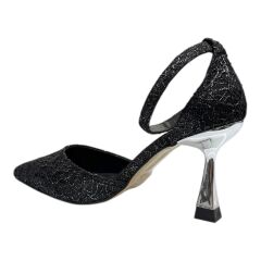 Siyah Taş Detaylı İnce Metal Topuklu Ayyakabı